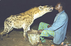 As evening falls, local men attract wild hyenas to the city in a bizarre spectacle as they bravely feed these dangerous scavengers.